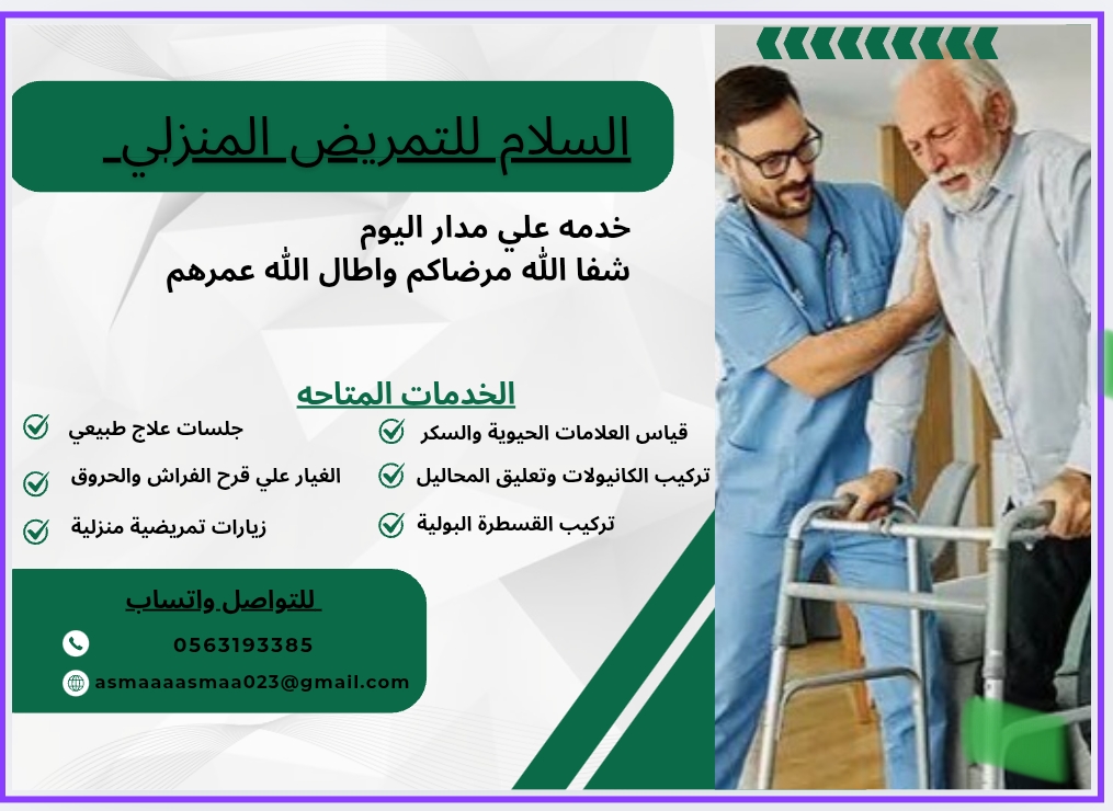 السلام للتمريض المنزلي والزيارات المنزليه وجلسات علاج طبيعي