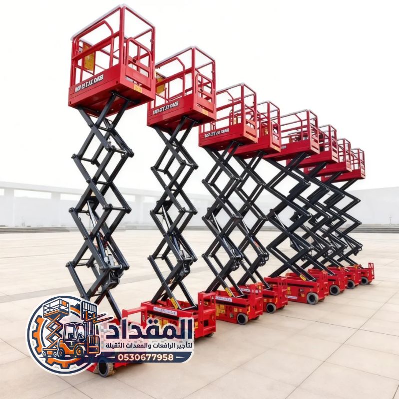 نوفر رافعات مقصية عالية الثبات والكفاءة تناسب جميع الاستخدامات مثل المستودعات، المولات، الصيانة، التركيبات، الإنارة، التمديدات، المشاريع الصناعية مع تأجير مرن (يومي – أسبوعي – شهري) وخدمة سريعة توصل للموقع مباشرة.