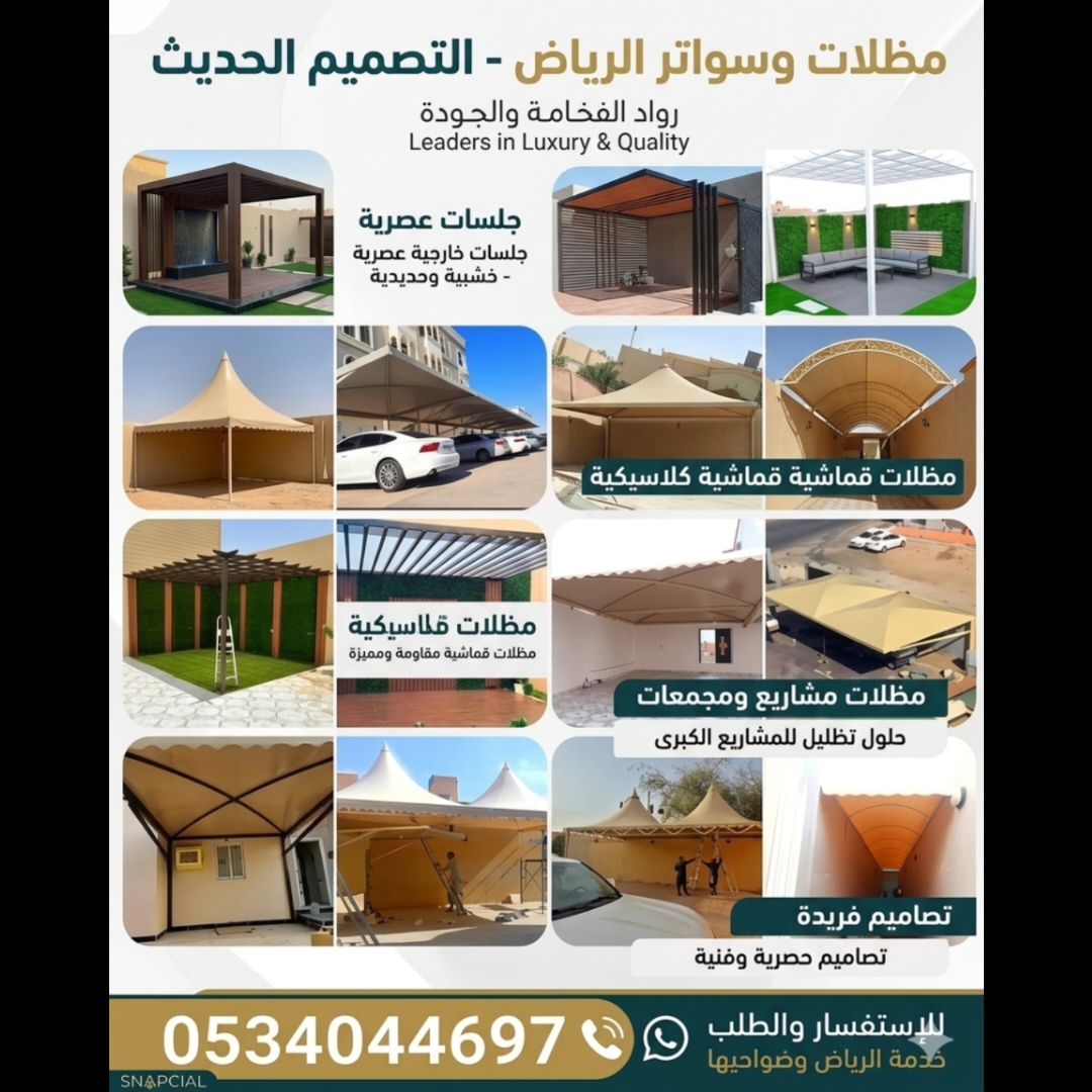 مقاولات_حديد_الرياض تنفيذ مشريع مظلات مدارس شركات جمعات اسواق تركيب جميع انواع المظلات تركيب جميع انواع اسواتر» 1 خيام بيوت شعر ملكية 2 مظلات شينكو PVC لكسان 3 شبوك قرميد بعد 4 هناجر مستودعات 5 سواتر للفلل شرائح مجدول 6 برجولات خشبية حديد 7 تنسيق ...