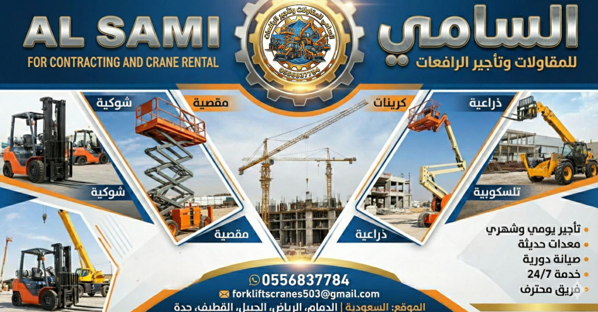 Al-Sami Contracting & Crane Rental provides professional and reliable forklift rental services in Dammam, Saudi Arabia, covering the entire Eastern Province with fast delivery, flexible contracts, and high-performance heavy equipment for all industrial and commercial needs.